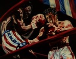 2016Rocky vs Apollo. Scene uit 1 van de vele 'Rocky' films met acteur Sylvester Stallone. In opdracht gemaakt.