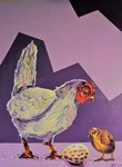 2016'Tok-tok is een modern schilderij van een Kip, kuiken en een ei.
